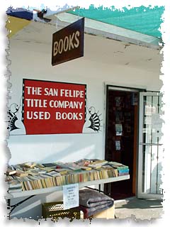 If you've just rolled over on the beach and closed the cover of your last book, you don't have to dispair about finding more reading material. Whether it be the latest Tom Clancy techno-thriller or the collected letters of Goethe, the San Felipe Title Company will be able to help you. They offer an astonishing selection of books and carry a large number of Baja-related titles as well. You can find them on the corner of Chetumál and Mar de Cortez, on the second floor next to Baja Java. |